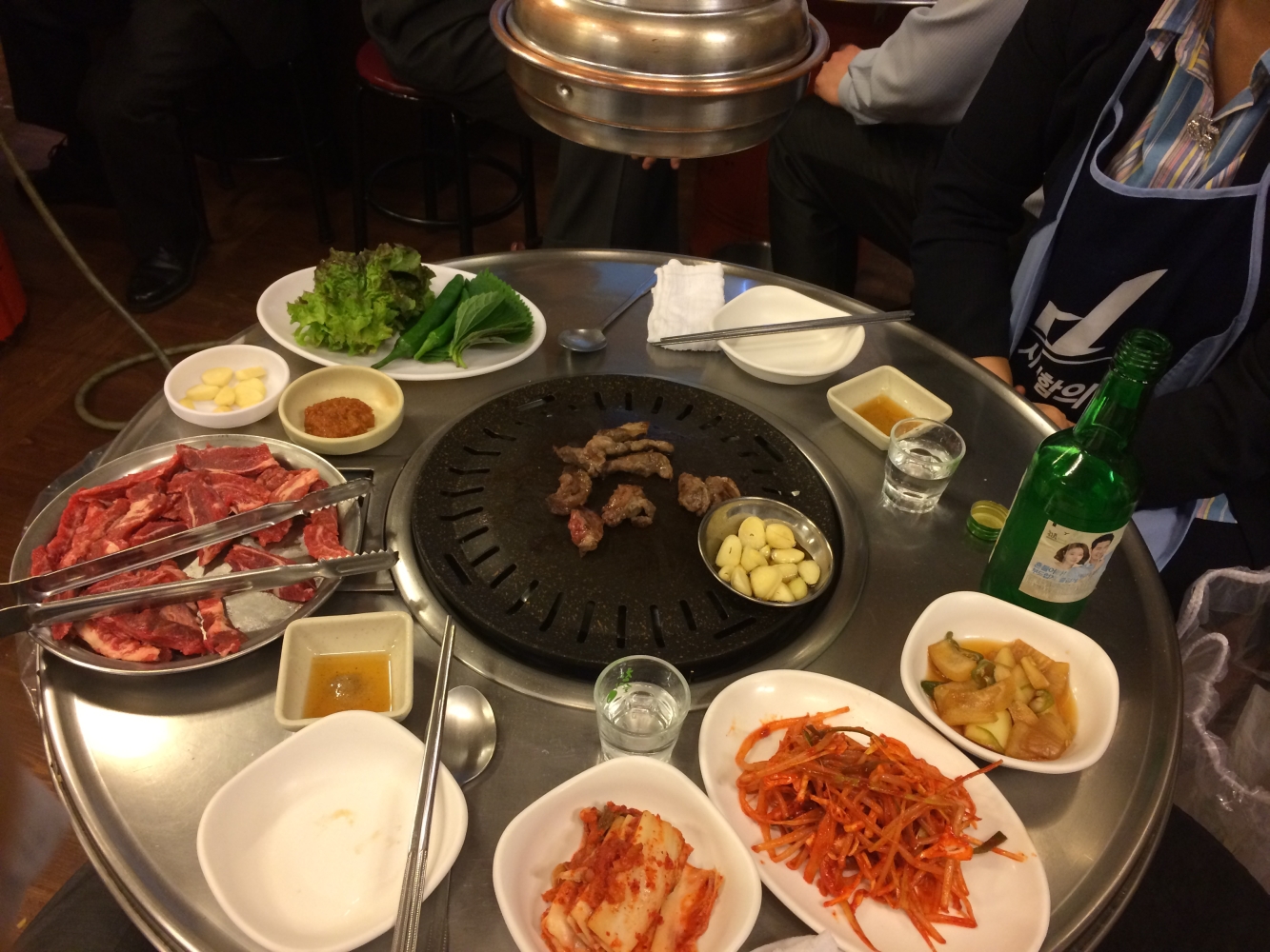 Für Sightseeing hatte ich letztendlich gar nicht so viel Zeit, da ich unter der Woche morgens bis abends arbeiten musste und eigentlich nur der Samstag frei war. Aber immerhin hatte ich Zeit mit Arbeitskollegen Essen zu gehen. So kam ich in den Genuss von authentischer südkoreanischer Küche. Viel exotisches Gemüse, Tofu, marinierter Fisch und Fleischkreationen. Wie auch in Taiwan wusste ich zwar selten was ich gerade esse, aber es schmeckte immer super. Ein traditionelles Essen besteht meist aus vielen kleinen Gerichten die gleichzeitig serviert werden und vom Stil her große Ähnlichkeiten mit Tapas haben. Aber die Geschmäcker sind intensiver und ungewohnter. Schwer zu beschreiben. Jeder Teller hat das Ziel ein bestimmtes Aroma hervorzuheben. Dadurch unterscheiden sich die Gerichte wie Tag und Nacht. Eine Geschmacksexplosion nach der anderen. Und damit man die jeweiligen Geschmäcker in ihrer Reinheit voll genießen kann werden die Geschmacksnerven zwischendurch immer wieder mit Kimchi (fermentierter Chinakohl mit Chilipulver) „gereinigt“. Das Fleisch ist auch geschmacksstark und wird oft direkt am Tisch gegrillt. Dazu gibt es immer eine klare Suppe und Reis, der deutlich klebriger ist als der chinesische. Insgesamt eine sehr leckere Erfahrung!