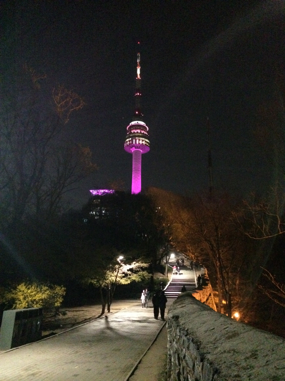 An Samstag erkundete ich dann auf eigene Faust die Stadt. Es gab viel zu viel zu sehen und ich konnte leider nur einen Bruchteil der Sehenswürdigkeiten besuchen. Aber ich nahm mir Zeit die Atmosphäre aufzusaugen und die Kultur kennenzulernen. Vor Sonnenuntergang absolvierte ich einen 5km-Marsch zur Spitze des „Namsam“, ein Berg mitten in der Stadt auf dem ein Fernsehturm steht. Von dort aus konnte ich kilometerweit in alle Richtungen schauen und den Sonnenuntergang genießen. Schön war zudem, dass ich tagsüber zwei Schweizerinnen kennengelernt hatte und wir gemeinsam die Stadt unsicher machen konnten. Und so hatte ich abends nette Gesellschaft mit der ich das eine oder andere (koreanische) Bierchen trinken konnte, um den Aufenthalt in Korea entspannt ausklingen zu lassen.