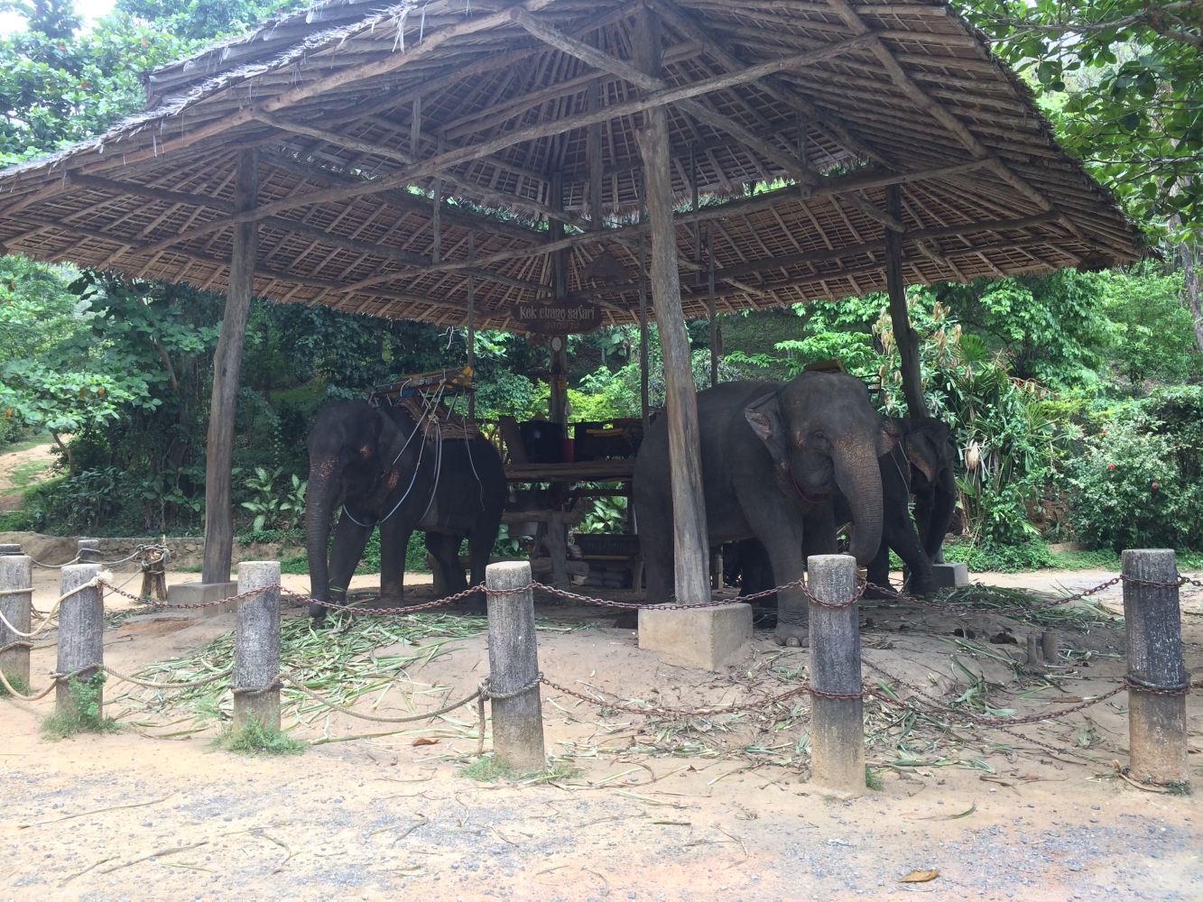 An unserem letzten Tag besuchten wir dann noch ein Elefantengehege im Dschungel, wo wir auch eine knappe Dreiviertelstunde mit-„reiten“ durften. Die Erfahrung muss man mal gemacht haben, aber auf Dauer ist es sehr anstrengend. Es wackelte, schaukelte und ging nur ruckartig voran. Der Elefant setzte jeden Schritt langsam und mit Bedacht, kam aber dennoch immer sehr hart auf. Aber sowas gehört natürlich in Thailand dazu und muss nicht unbedingt wiederholt werden.