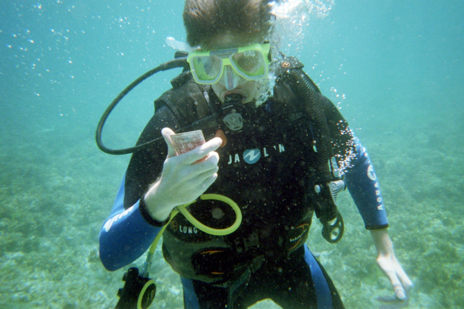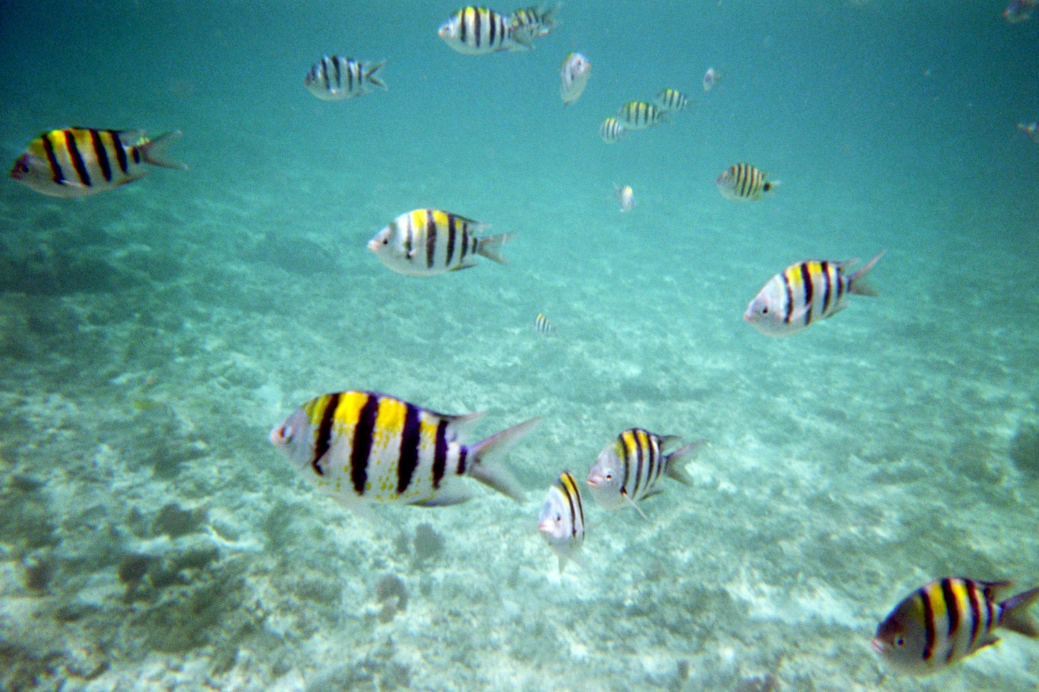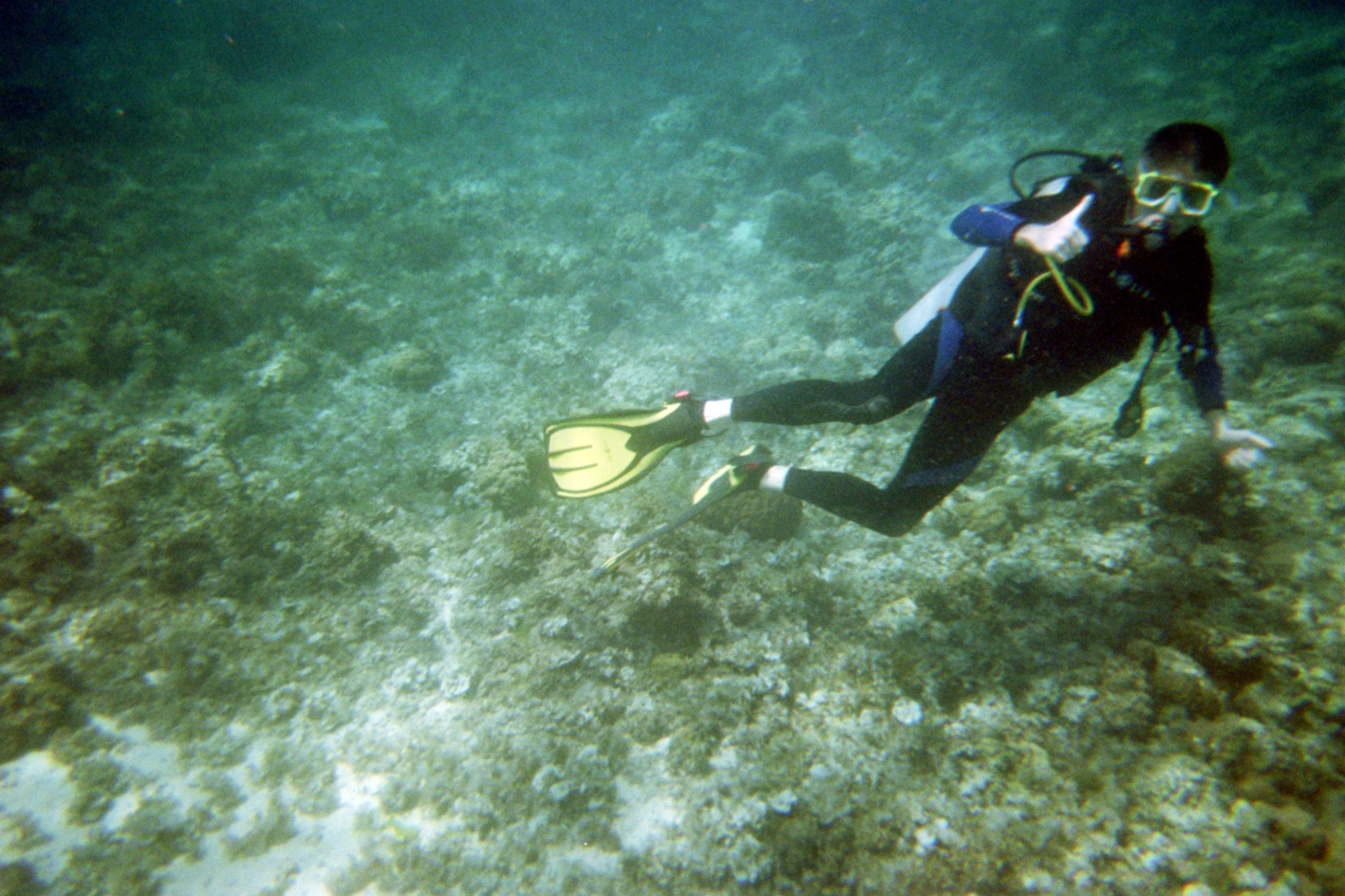 Nach einem luxuriösen (und günstigen!) Frühstück im Zimmer wurden wir am nächsten Morgen von einem Fahrer abgeholt der uns zu einer Tauchschule chauffierte. Da weder ich noch Mandy eine Tauchlizenz besitzen begleitete uns für den Tag ein „Dive Master“ der uns anleiten würde. Für ca. 120 Euro bekamen wir für einen halben Tag ein privates Boot, einen Kapitän, einen Koch, Mittagessen und Getränke, sowie natürlich den Dive Master, samt vier Sauerstofftanks und Ausrüstung. Wir waren beide etwas nervös, doch wir fingen langsam an. Richtig Atmen, Handzeichen, Notmanöver und Druckausgleich. Danach erst einmal auf zwei Meter, dann vier Meter und bis runter auf sechs Meter. Es klappte eigentlich ganz gut, auch wenn wir anfänglich etwas Probleme mit dem Atmen hatten. Mandy verschluckte ständig Salzwasser und ich tat mir schwer normal zu atmen. Es ist einfach ungewohnt unter Wasser zu atmen und ich tätigte jeden Atemzug als wäre es mein letzter. So war nach 30 Minuten für mich die Luft schon raus (im wahrsten Sinne des Wortes). Aber wir waren trotzem begeistert und wollten alsbald mit neuen Sauerstofftanks noch einmal runter. Das Wasser war klar und es gab reichlich farbige Fische zu sehen, doch die Hauptattraktion war das Gefühl des Tauchens selbst. Ganz entspannt im Wasser schweben zu können, sich in Ruhe die Umgebung anzuschauen und sich wie schwerelos fortbewegen zu können war einfach klasse. Eine ganz andere Welt. Dazwischen noch frisches Essen, Sonnenschein und Entspannung, besser kann ein Tag nicht sein.