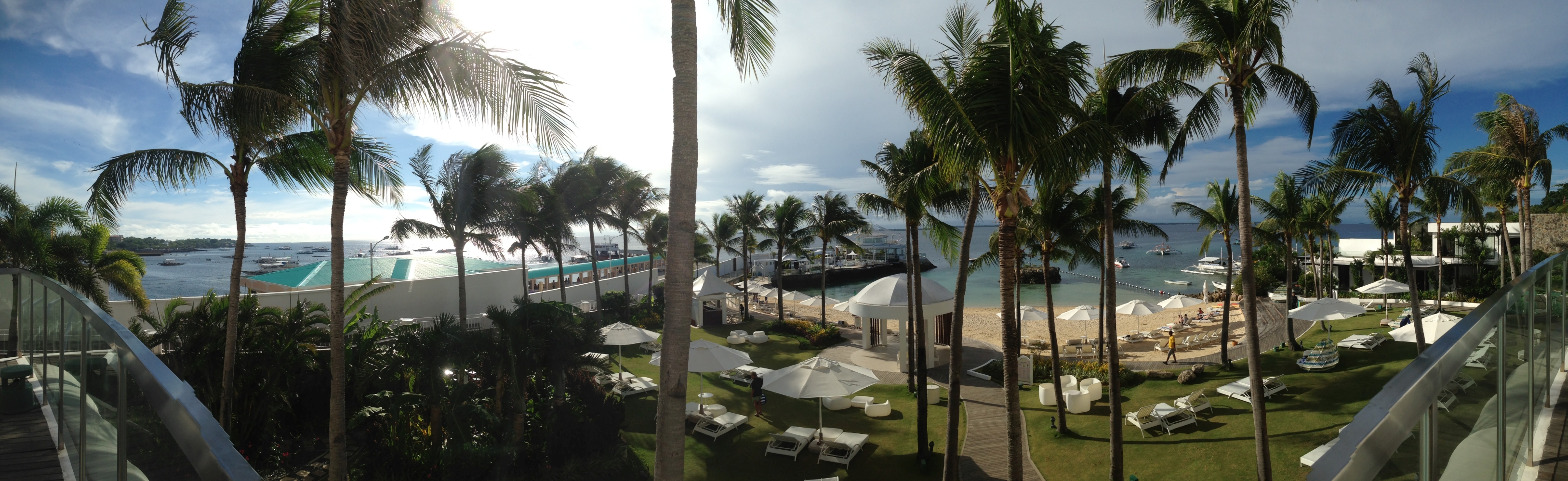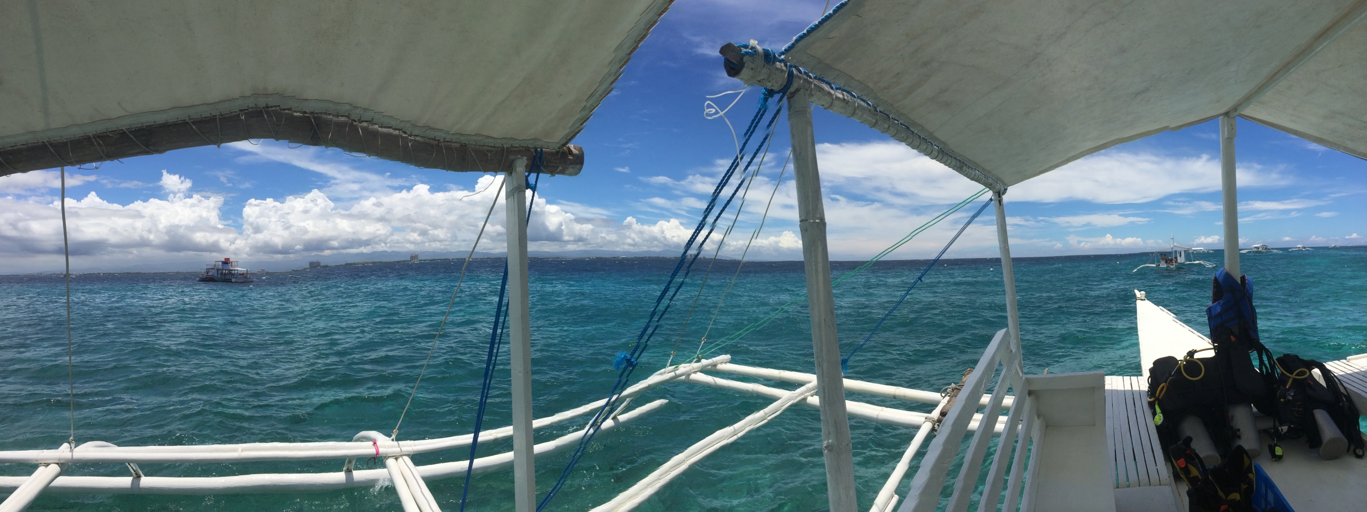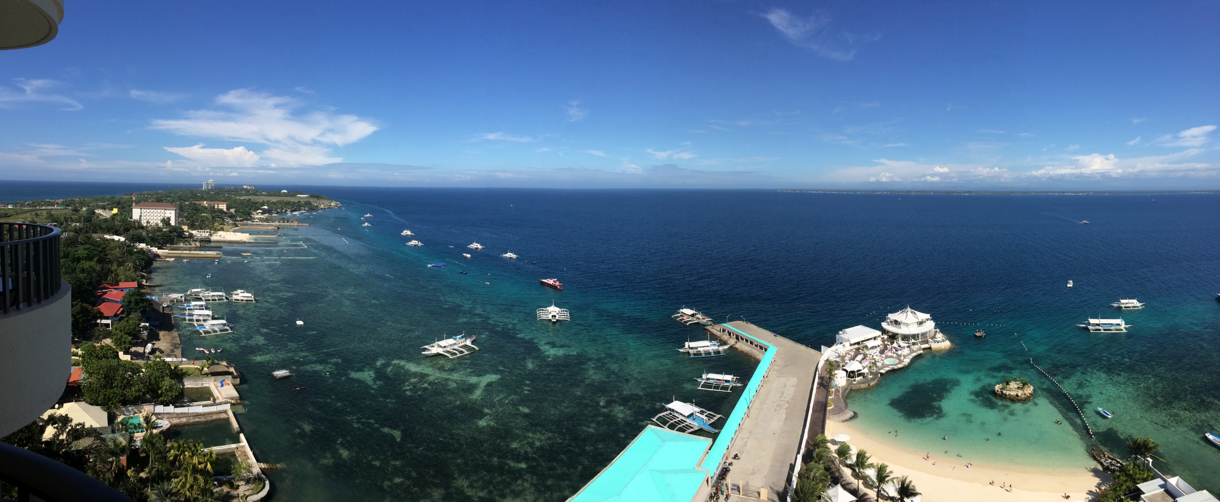 In knapp vier Stunden flogen wir von Singapur nach Cebu City, die mit 866.000 Einwohnern die fünft-größte Stadt auf den Philippinen ist und den zweit-größten Flughafen nach Passieraufkommen betreibt. Die gleichnamige Insel liegt so ziemlich genau in der Mitte des Landes und bietet massig Postkartenmotive. Die Strände sind goldgelb, das Wasser kristallklar und die Berge sattgrün. Wir hatten ein Hotel direkt am Meer mit Blick auf blaues Wasser und am Horizont die Insel Olango. In diesem Gebiet befinden sich die begehrtesten Tauchstellen Asiens, die wir am nächsten Tag nicht unbesucht lassen würden. Doch für den Rest des ersten Tages genossen wir die Meeresluft und den hoteleigenen Strand. Die Temperatur war perfekt und der Himmel blau, sodass wir uns in Ruhe von unserem Flug erholen konnten.